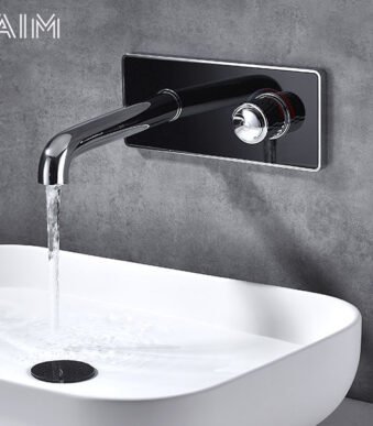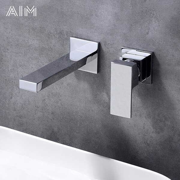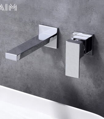 Robinet Mitigeur Lavabo Mural Chromé en Laiton – Design Moderne Encastré